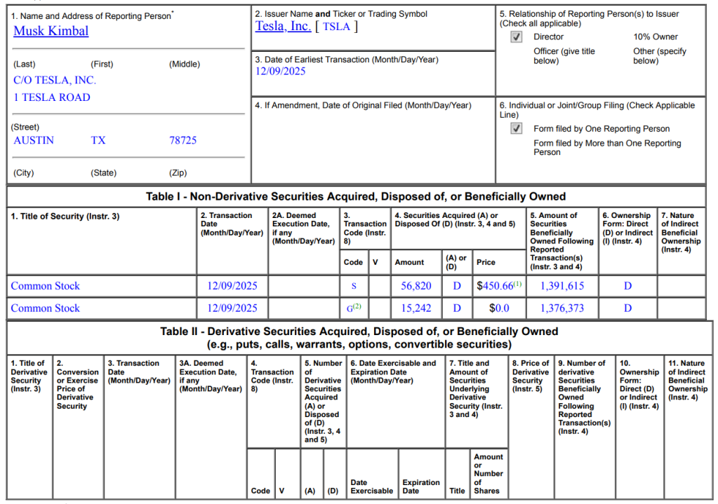 Elon Musk’s brother unloads $25 million in Tesla (TSLA) stock as price surges past $450