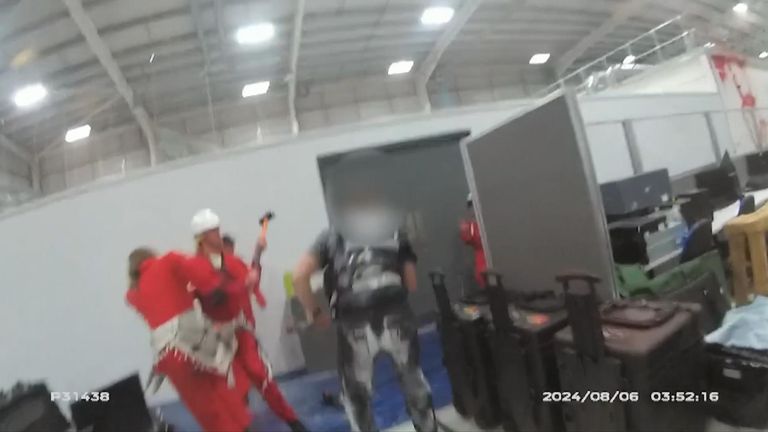 “As he has reached us he has swung the sledgehammer multiple times towards me,” PC Buxton said.