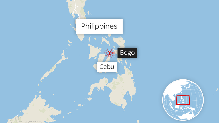 The centre of the quake, which knocked out power lines and sent people running out into the streets, was about 12 miles northeast of Bogo, a coastal city of about 90,000 people on the island of Cebu.