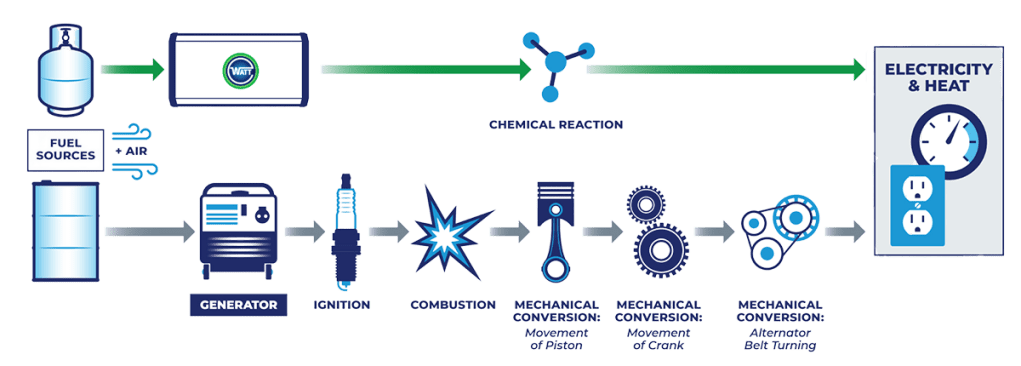 That said, while solar is still the better solution in an ideal world, a WATT HOME fuel cell might be a better option in situations where rooftop space is limited (or nonexistent), such as condos or vertically-designed townhomes. In those scenarios, solar panels are unlikely to generate a meaningful amount of electricity, but a fuel cell that can tap into the buildings’ existing natural gas lines to provide reliable backup power if the grid fails.