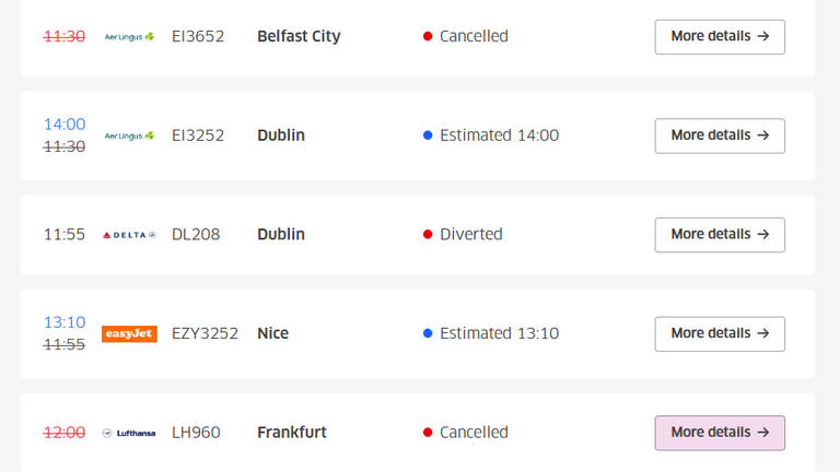 And a live arrivals board on the airport’s website showed multiple flights diverted, delayed and cancelled.