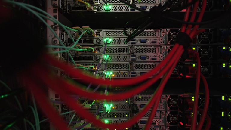 We were given access inside one of the company’s existing server centres – behind multiple security cordons into rooms only accessible with fingerprint identification. And there we saw the infrastructure necessary to keep those AI chips running. We saw an Nvidia DGX H100 running away, in a server rack capable of sucking in more power than a small village. We saw the cooling pipes running in and out of the building, as well as the ones which feed coolant into the GPUs (graphic processing units) themselves.