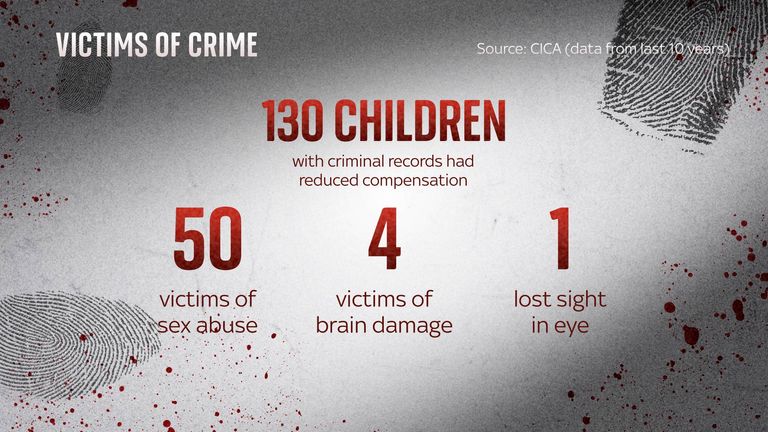 Sky News has found that at least 130 children with criminal records have received reduced awards over the last 10 years, including 50 victims of sex abuse, four victims of brain damage, and one child who lost sight in an eye.