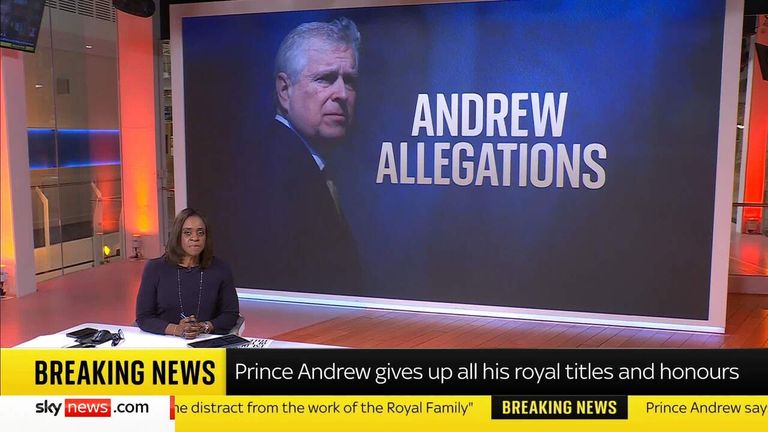 Prince Andrew is giving up his Duke of York title. Sky News understands this will be immediate.