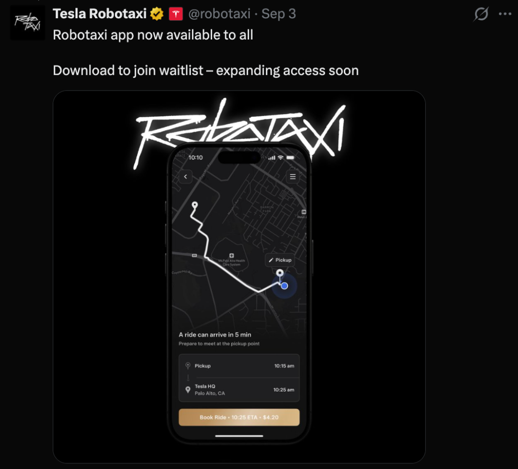 Tesla opens the Robotaxi app “to all” in September