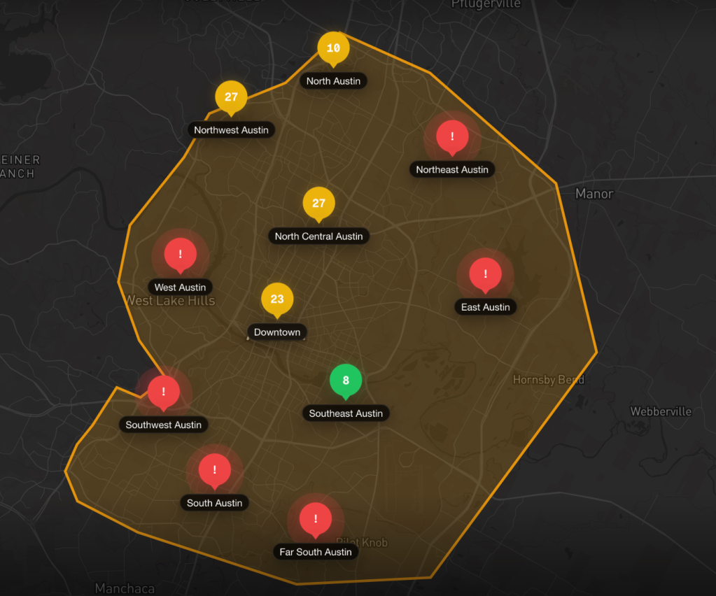 McKanna’s tracker can ping 11 different locations within the service area in Austin, and as the chart above shows, it is often shown to be unavailable everywhere, even within the official working hours.