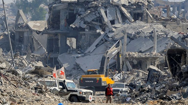 Image: Hamas said the work to return the bodies of Israeli hostages has been complicated by the devastation in Gaza. Pic: Reuters