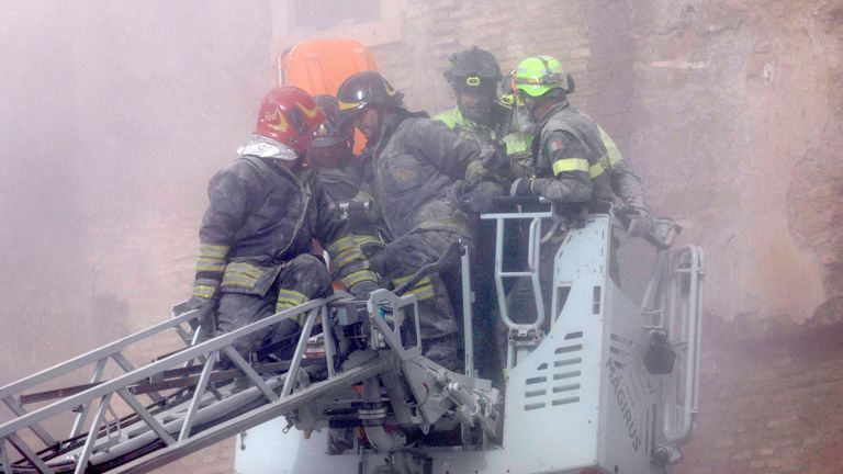 Italy’s national fire department spokesman Luca Cari said they were trying to get the man, who was still stuck hours after the initial collapse, out alive, “but the situation is complex because of the risk of further collapses”.