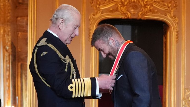 Becks, Goldenballs and now officially Sir David – football star David Beckham has received his knighthood from the King.