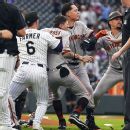 Several players charged toward the infield, and MLB said Chapman was disciplined for “pushing” Freeland. Adames also was in the middle of the scrum.