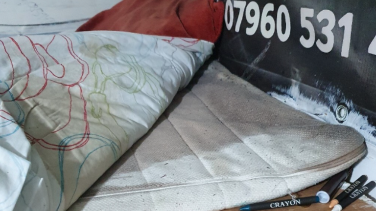 Image: A victim was forced to sleep on a thin, dirty mattress on the floor